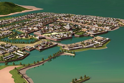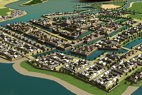 築城主細川忠興は商工業保護政策を実施し城下町は繁栄する。