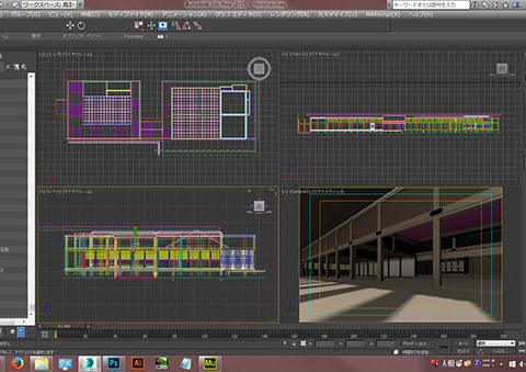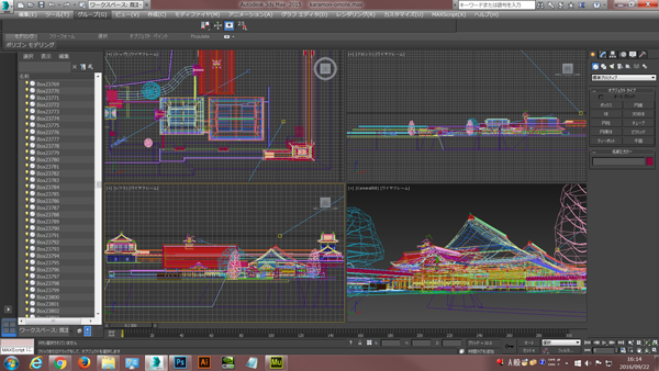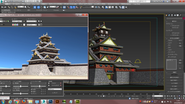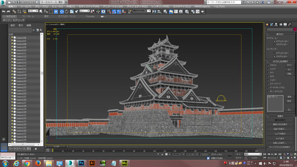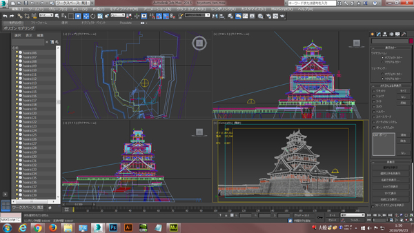 下の画像は3D城郭データの中で人気の「豊臣氏大坂城データ」を3ds maxで開いた直後のキャプチャー画面です。